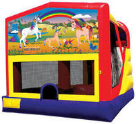 Mod-4 Combo Unit RentalsLarge selection of themed Mod-4 combo inflatablesMod-4 Combo - Features large bouncing area, basketball hoop, climbing and slide. |