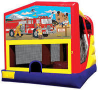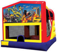 Mod-4 Combo Unit RentalsLarge selection of themed Mod-4 combo inflatablesMod-4 Combo - Features large bouncing area, basketball hoop, climbing and slide. |